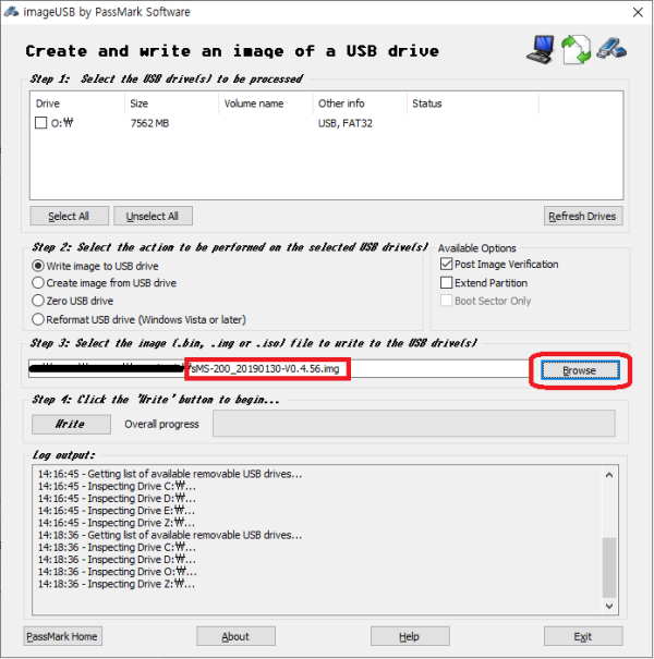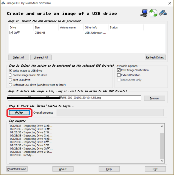 Run imageUSB. The connected USB device will be shown up. If the connected USB device is not shown, click 'Refresh Drives'.