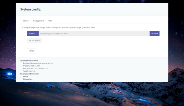 Here you can change the system name and background image, setup wifi, adjust library settings, perform a system upgrade, reboot or power off.