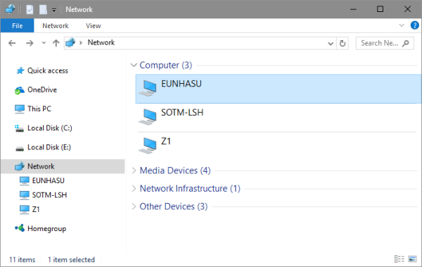 You can access the Eunhasu share folder to manage music files. Select 'EUNHASU' in the 'Network' part of Explorer. If you have serveral Eunhasu-enabled devices, please change system name because it could cause conflict in the network.
