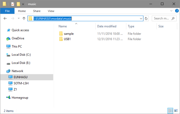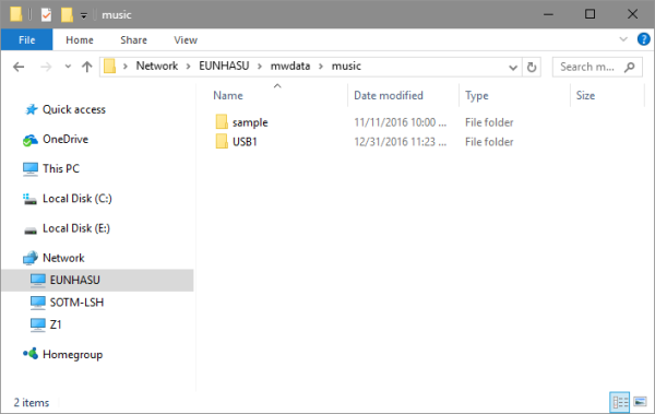 If you want to copy files into the sMS-1000SQ music directory, drag and drop files to the path, \\EUNHASU\mwdata\music, like the screen shot below: