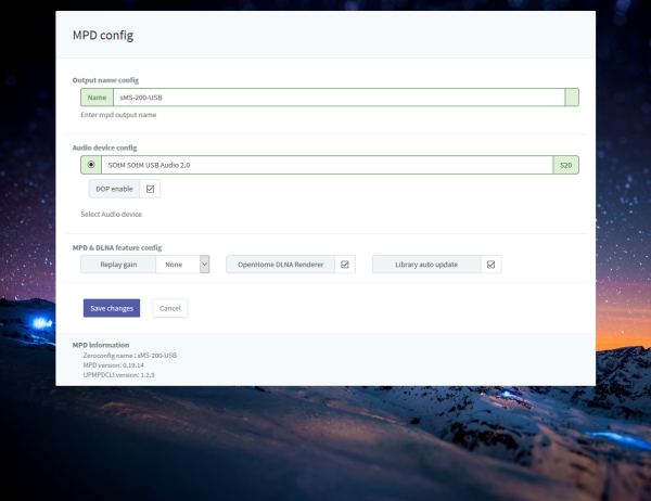 Save changes: Save the information you entered or modified, and MPD & DLNA will automatically restart if MPD & DLNA is started and running.