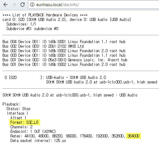 Audio device config: Select a radio button of USB DAC which is going to be used and click ‘Save changes’ to use the USB DAC.