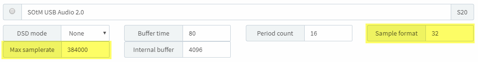 Input 'Max samplerate' and 'Sample format' by DAC information. Please refer to highlighted part.