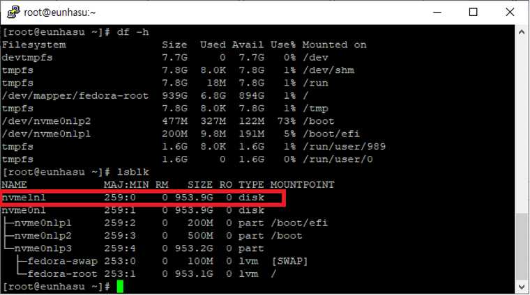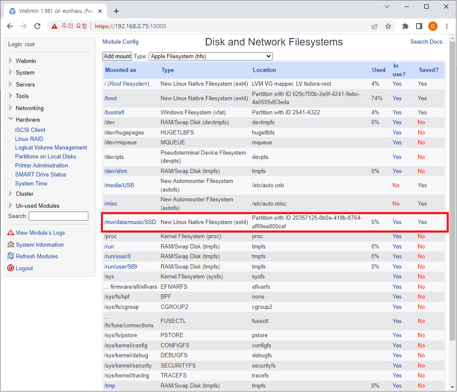 14. Webmin에서 지정한 경로에 추가 Disk가 Mount된 것을 확인할 수 있습니다.