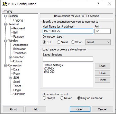 1. SSH 접속프로그램(Putty)를 이용하여 sMB-Q370에 접속합니다.