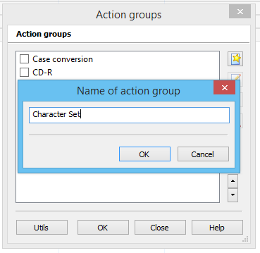 “실행 그룹” 이라는 창이 새롭게 나타나며, 새로운 “실행 그룹”을 추가하여 태그 정보를 수정해 줍니다. “실행 그룹” 창의 오른편 첫번째에 있는 “새 구성요소 만들기” 아이콘을 선택하면, “실행그룹의 이름” 창이 나타날 것입니다. 아래의 이미지와 같이 “Character Set” 등과 같은 새로운 이름을 지어주고, “OK” 버튼을 클릭합니다.
