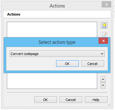 새로운 “실행” 창이 열리며, 창의 오른편 첫번째에 있는 “새 구성요소 만들기” 아이콘을 선택하면, “실행 유형 선택” 이라는 새로운 창이 보여집니다. 새로운 창의 드롭다운 메뉴에서 “코드페이지 변환”을 선택 후, “확인” 버튼을 누릅니다.